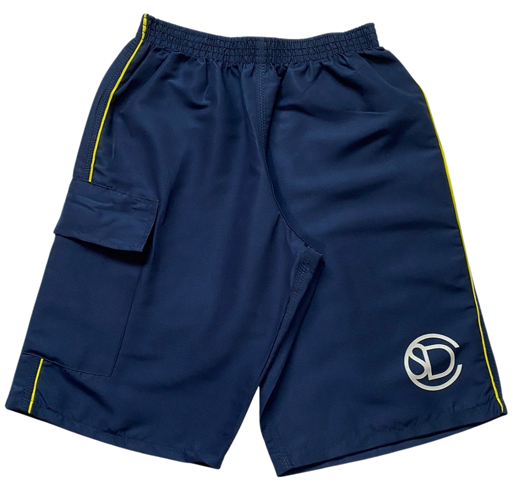 COR AZUL MARINHO, FRISOS NAS LATERÁIS NA COR AMARELA.